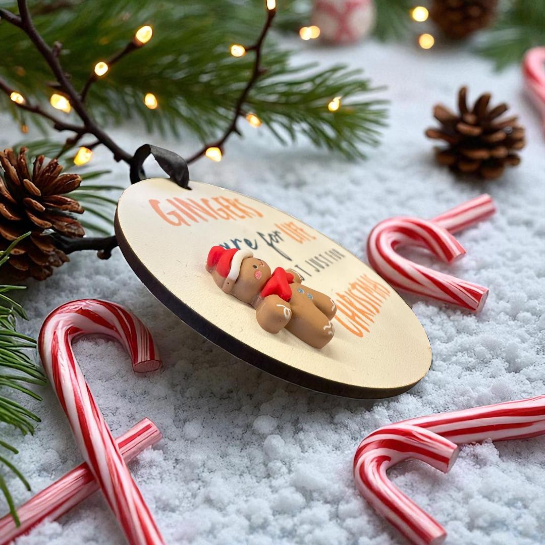 Celebrate the charm of redheads with this 9cm MDF "Gingers are for Life" decoration. Featuring the cutest 3D gingerbread person and finished with a sleek black ribbon, it’s ready to hang wherever you like. This fun and thoughtful gift is perfect for showing appreciation to your ginger friends all year round.