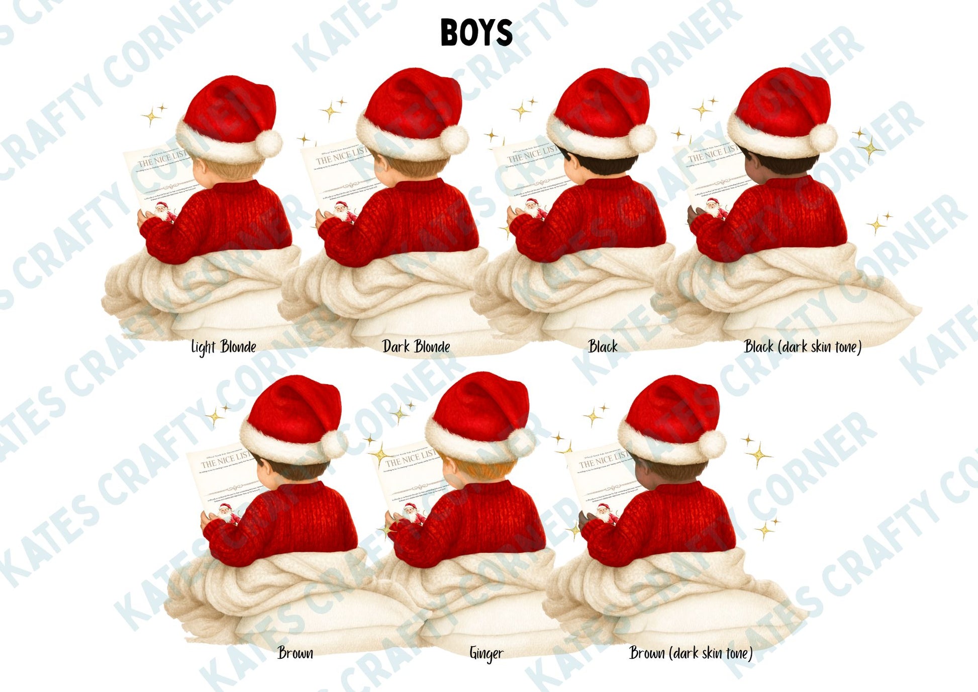 Celebrate the magic of Christmas with these exquisite 6" x 6" Nice List Christmas Cards. Each card features a charming illustration of a boy or girl proudly reading their name on a "Nice List" certificate, personalised by selecting the hair colour and providing the child's name in the order notes section at checkout. Printed on high-quality 250gsm matte card and paired with a matching white envelope, these cards offer a thoughtful and elegant gift that captures the festive spirit beautifully. Cards are blank inside.