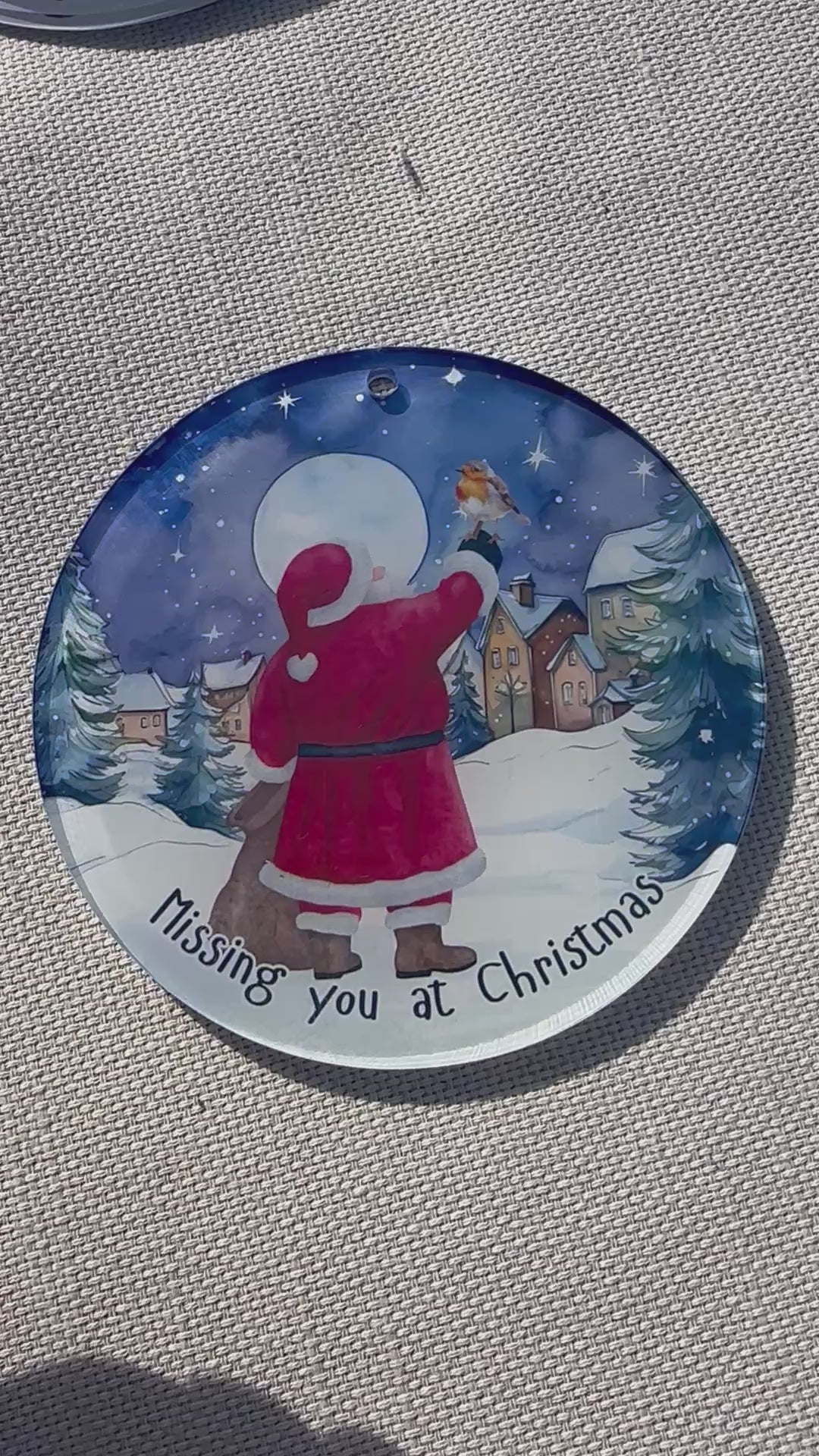 The 10cm Robins Appear Bauble features one of three beautifully detailed robin designs, crafted with a crystal-clear acrylic front and a matte-printed back that delivers a sophisticated glass-like finish. Have a look at the video to see just how beautiful these are. When illuminated by Christmas tree lights, its delicate shimmer is truly captivating. Finished with a red or white ribbon (you can let me know in the order notes.) Customise the text on any design by contacting us with your preferred wording, making this bauble a stunning and unique addition to your Christmas decorations or as a gift for someone else.